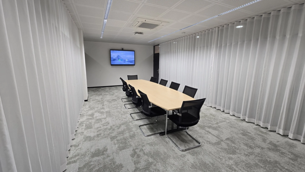 Das moderne Sitzungszimmer schafft den idealen Rahmen für Kundentermine, Präsentationen und konzentrierte Besprechungen.