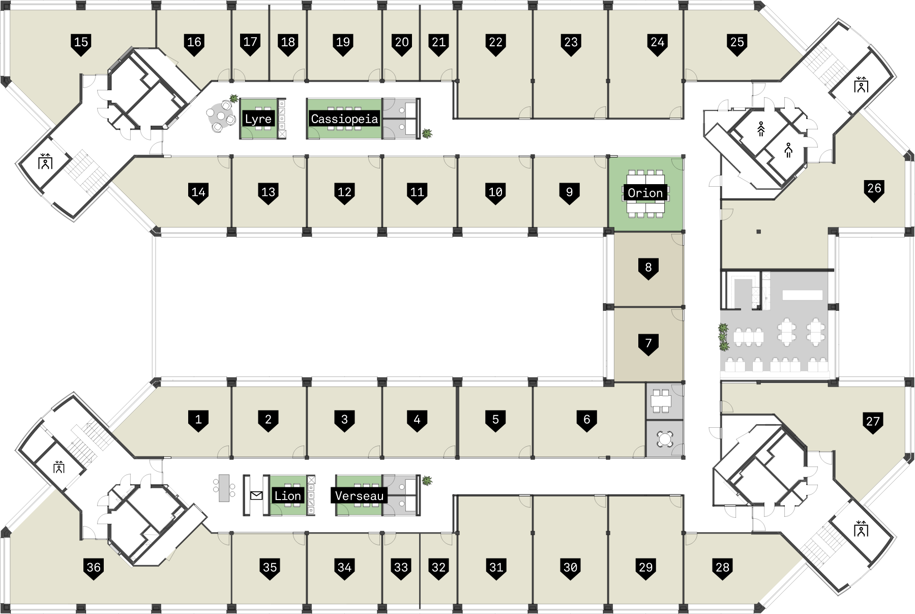 Zwischen 17 und 108 m² – flexibel nutzbar für Einzelpersonen und Teams.